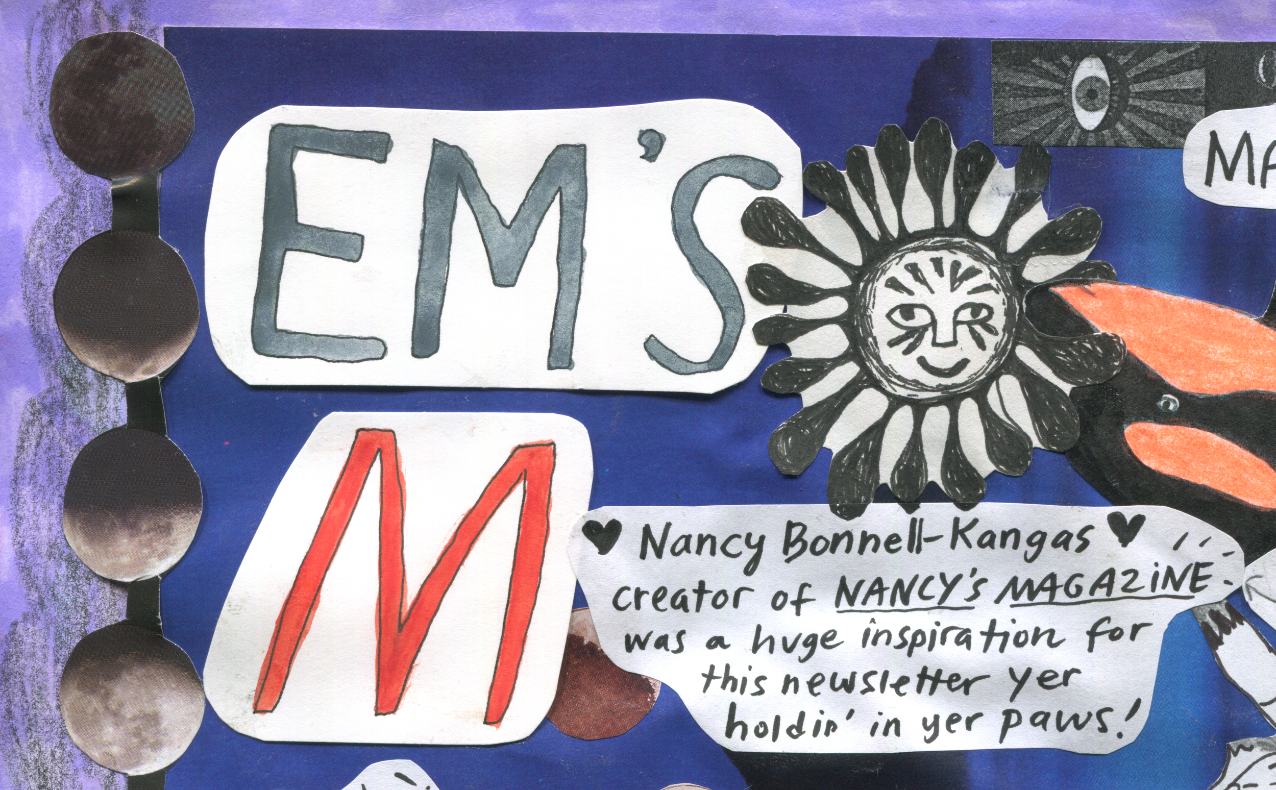 I create a collage+type, monthly, snail mail newsletter called EM(ily)’s M(agazine) and you can subscribe - starting at just $3/month - below!