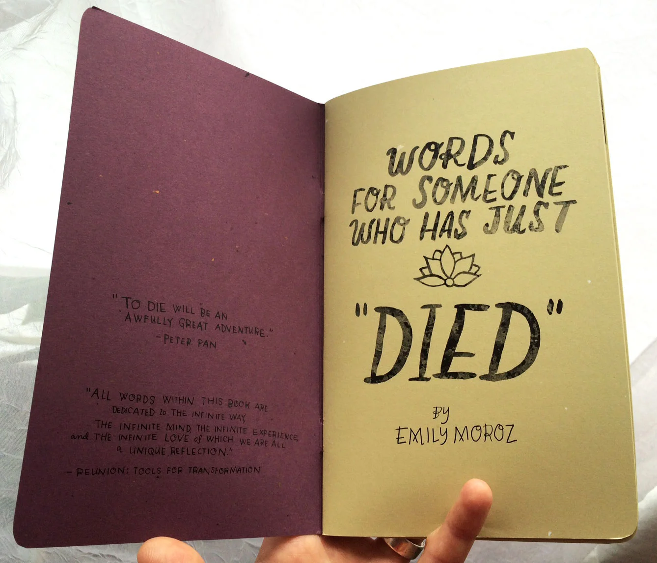 Words for Someone Who Has Just 'Died,' inside cover, 32 pages b&w, 2015